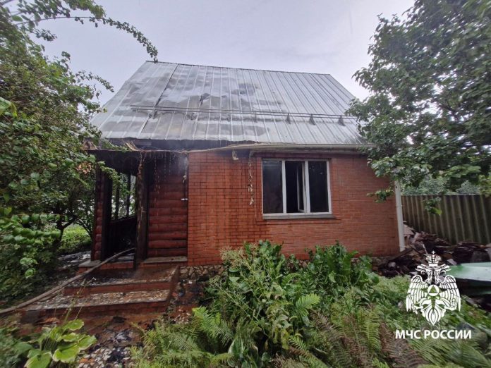 По предварительной информации, причиной пожара стало попадание молнии, сообщил сайт ГУ МЧС по Рязанской области.
