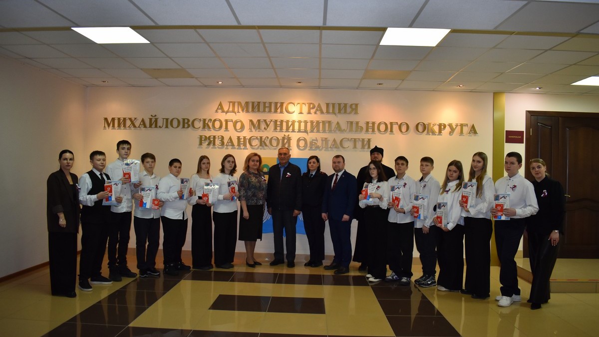 Поздравляли детей с Днем Конституции и получением паспорта депутат Рязанской областной Думы Владимир Сидоров, депутат Думы Михайловского округа Михаил Зайцев, начальник отделения по вопросам миграции МО МВД России «Михайловский» Ирина Зикеева, начальник окружного управления образования и молодежной политики округа Ольга Максаева и благочинный Михайловского второго округа иерей Александр Рунов. Они подчеркнули, что быть гражданином России – это большая честь и большая ответственность, призвали ребят всегда быть истинными детьми своей Родины и в любой ситуации всегда оставаться людьми.