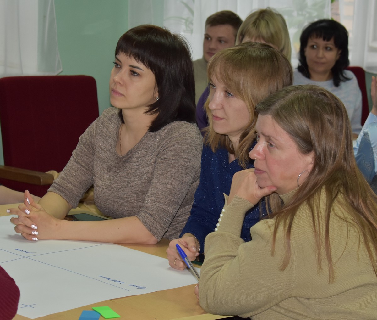 Участники встречи объединились в команды по 6-8 человек для создания совместного проекта развития территории. Каждая команда после обсуждения рассказала о результатах своей работы. Анализ этой работы, мнений жителей и анкетирования ляжет в основу публичного отчета и открытого технического задания на подготовку проекта.